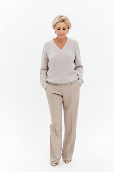 Роскошные, теплые, комфортные брюки из смеси кашемира и шерсти. Вывязанные по всей длине штанины стрелки добавляют строгости и визуально удлиняют ноги, без складок и лишнего объема в области талии и бедер. Пояс с эластичной вставкой обеспечивает комфорт и идеальную посадку. Образ можно дополнить джемпером и жакетом из той же коллекции.