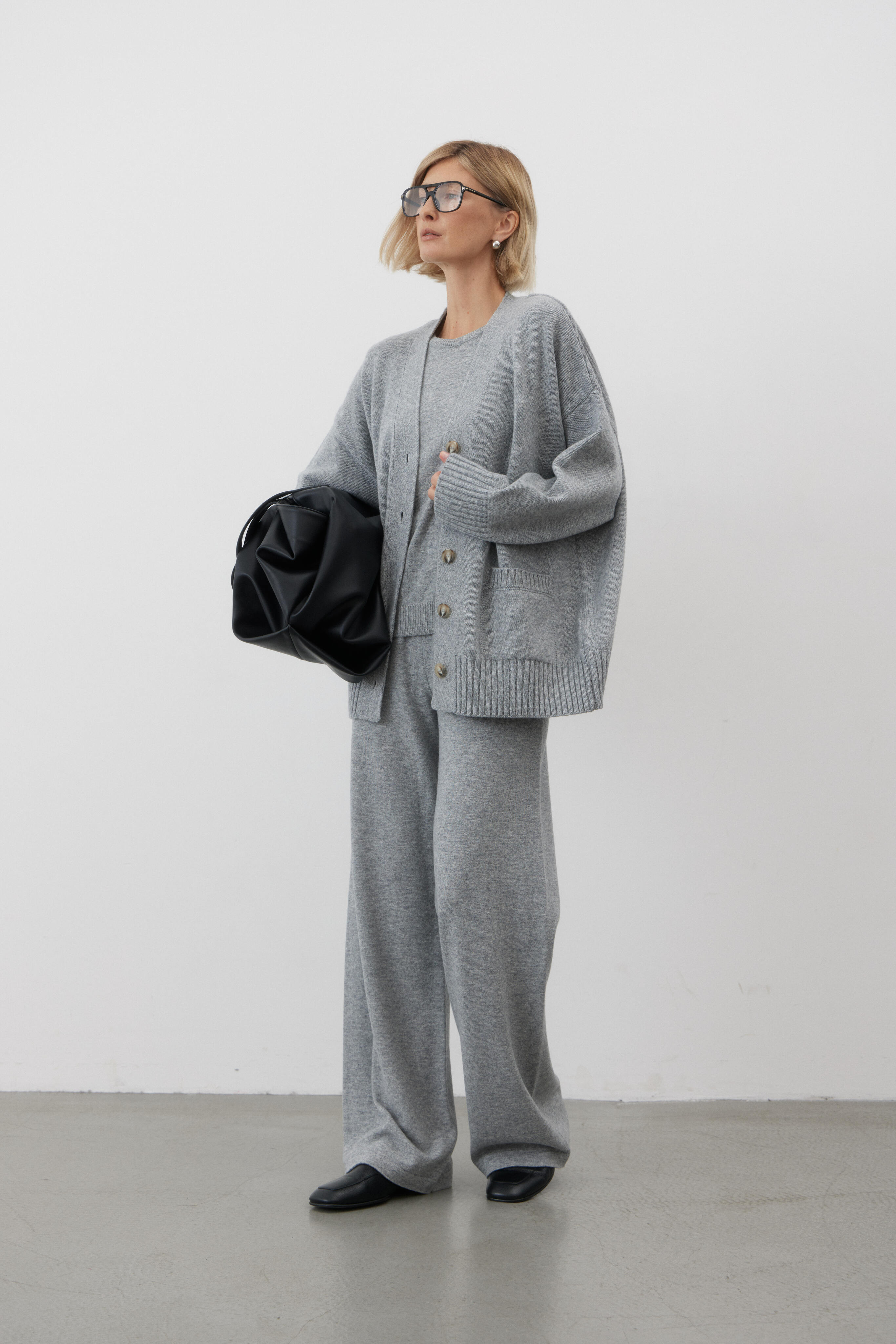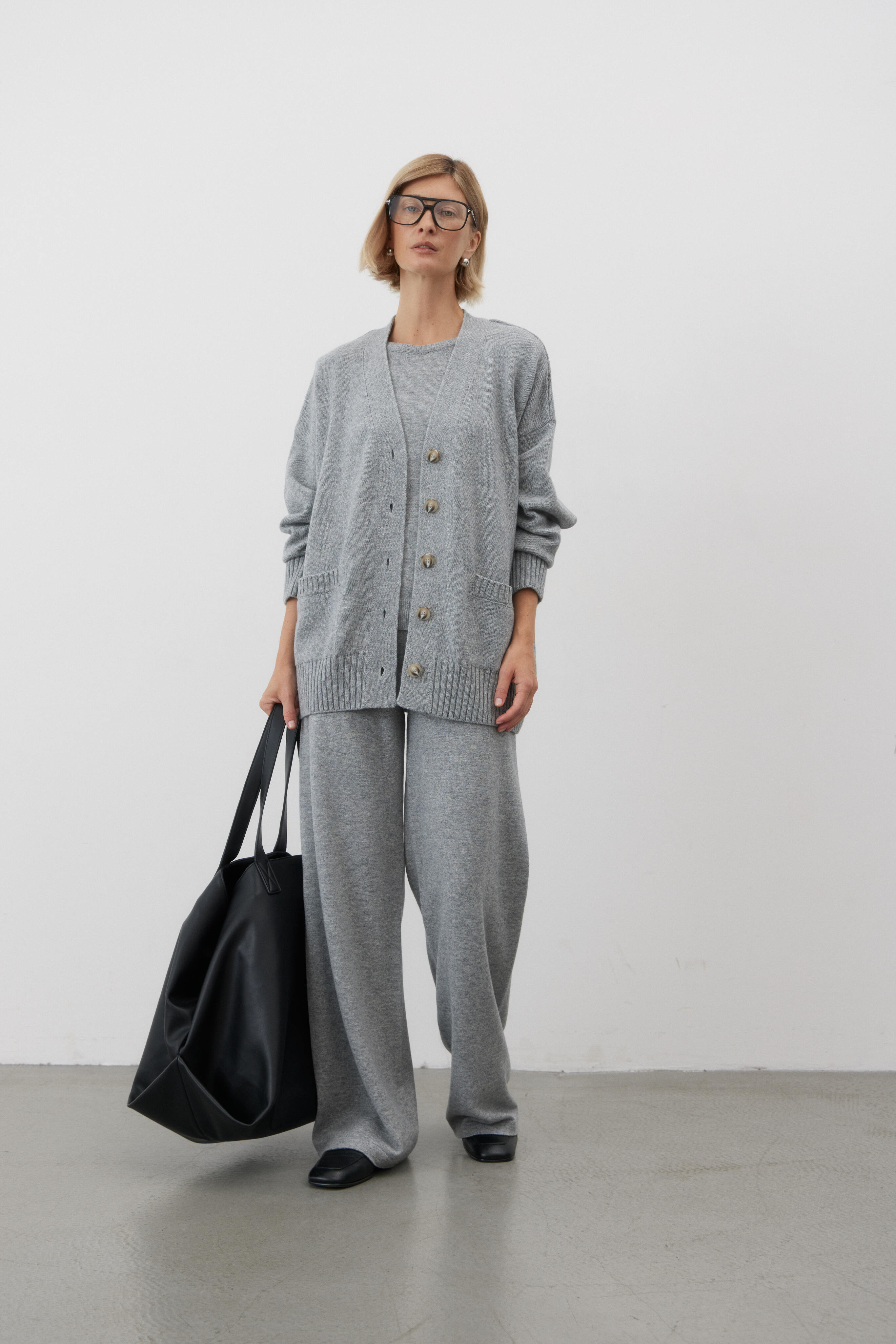 Брюки связанные в одну нить из кашемира и шерсти, ощущаются на теле очень легкими и уютными. Модель прямого силуэта с высокой посадкой, на поясе с широкой резинкой. Преимущество данной модели - 4 роста. Дополнить образ можно кардиганом, свитером, пуловером или футболкой в таком же цвете.