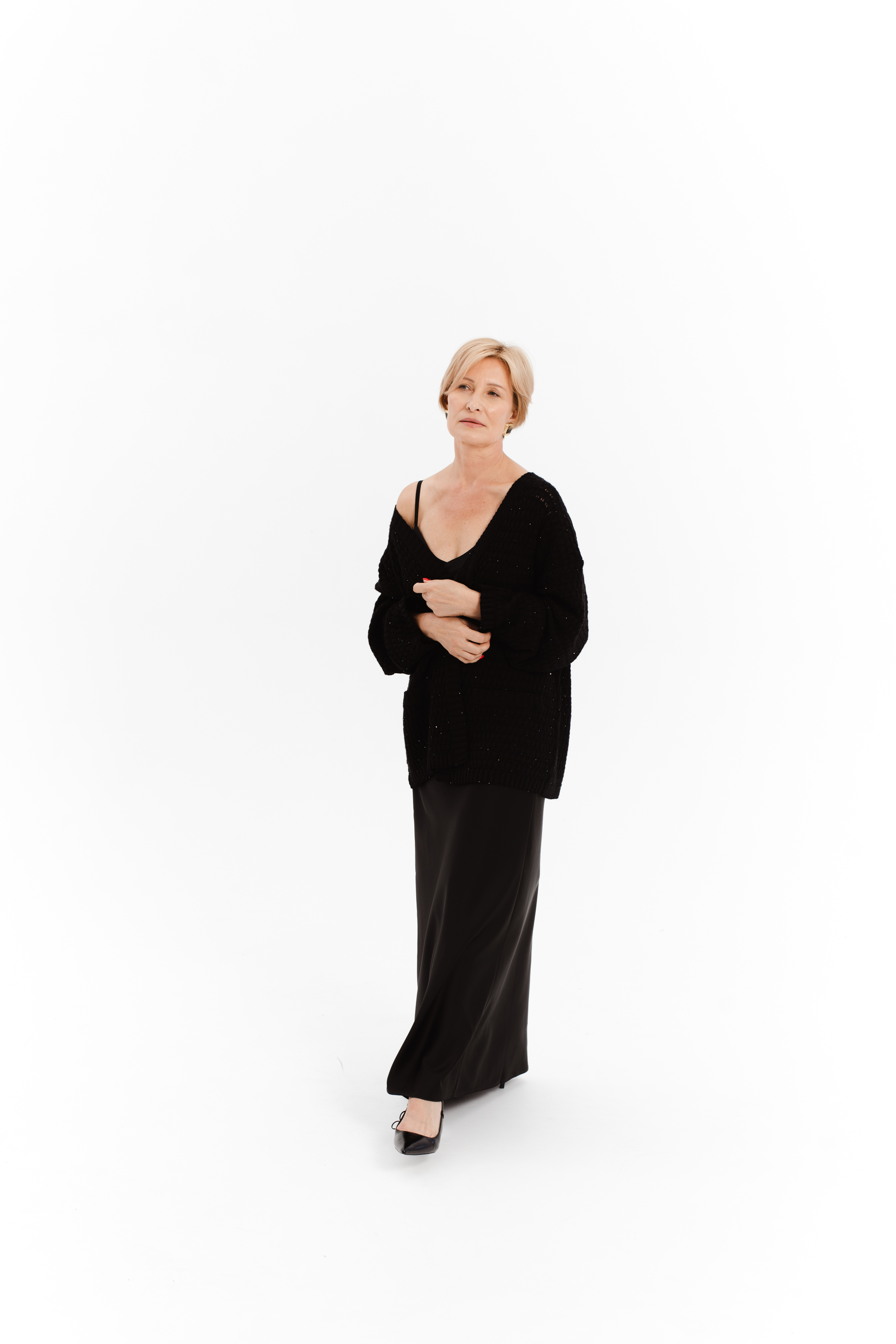 Ажурный кардиган из мохера с пайетками — это изысканный элемент гардероба, который сочетает в себе нежность, элегантность и современный шик. Такой кардиган идеально подходит для создания разнообразных образов — от повседневных до вечерних.