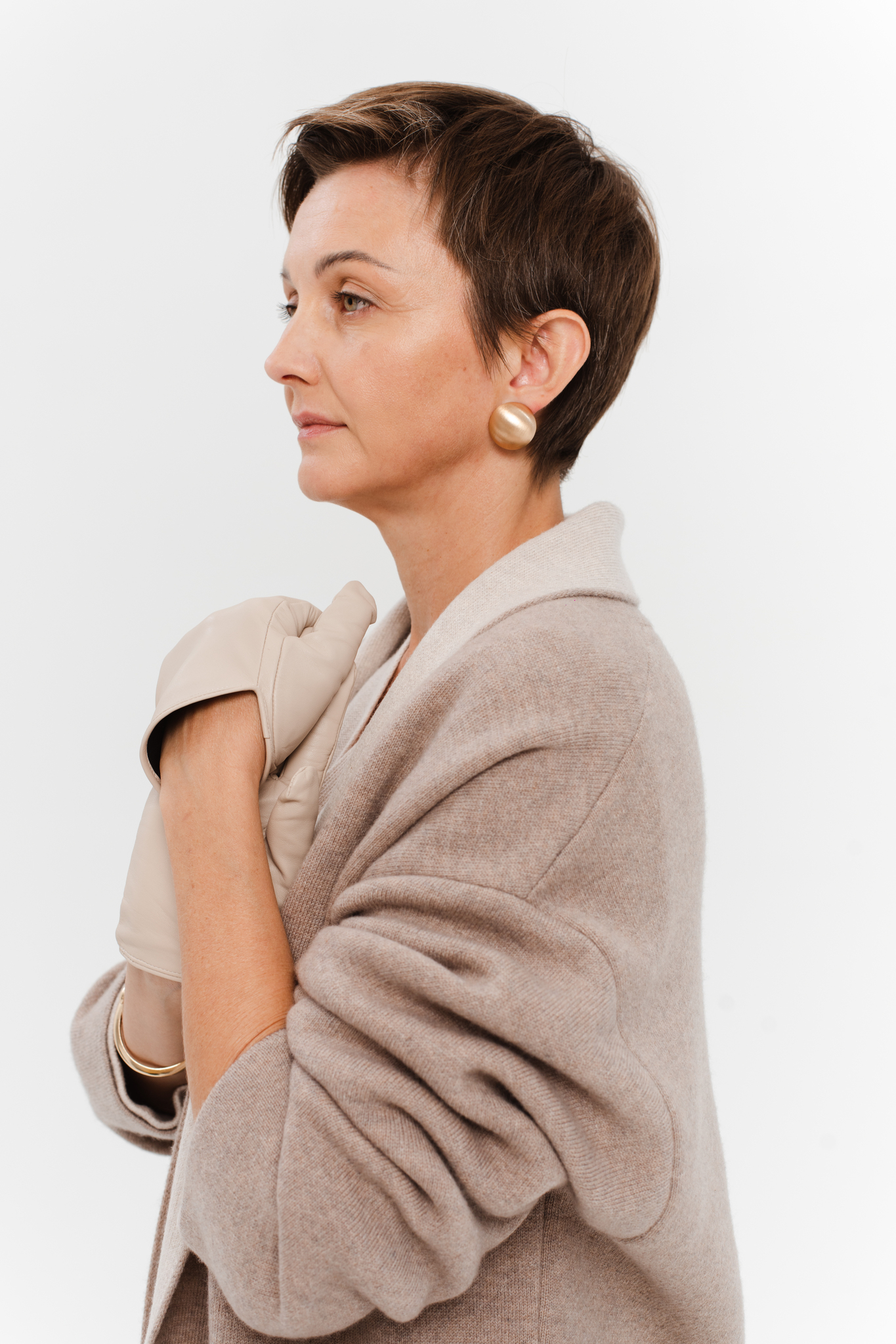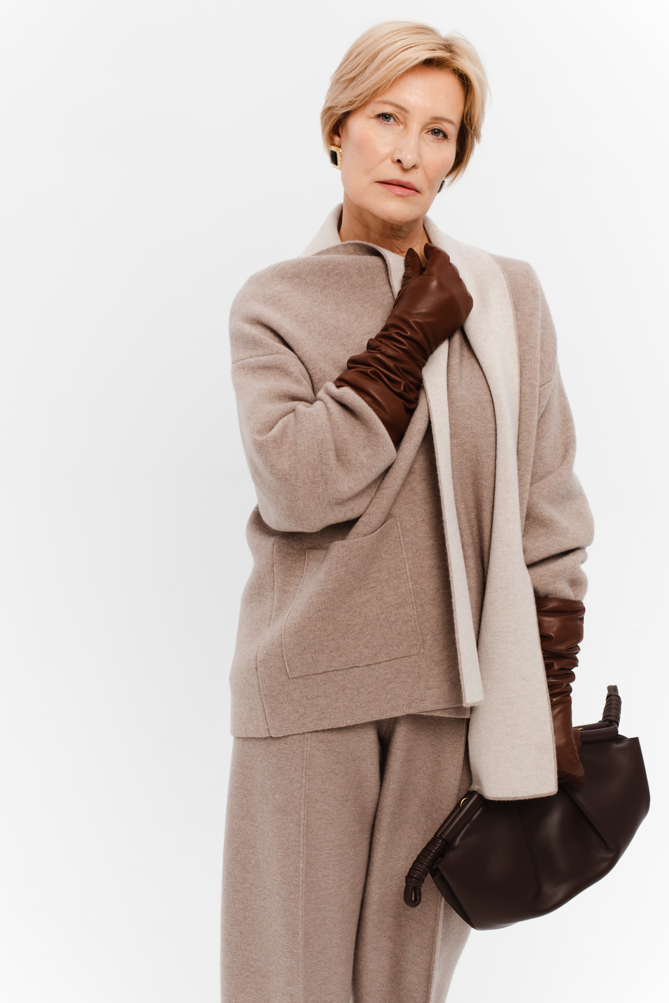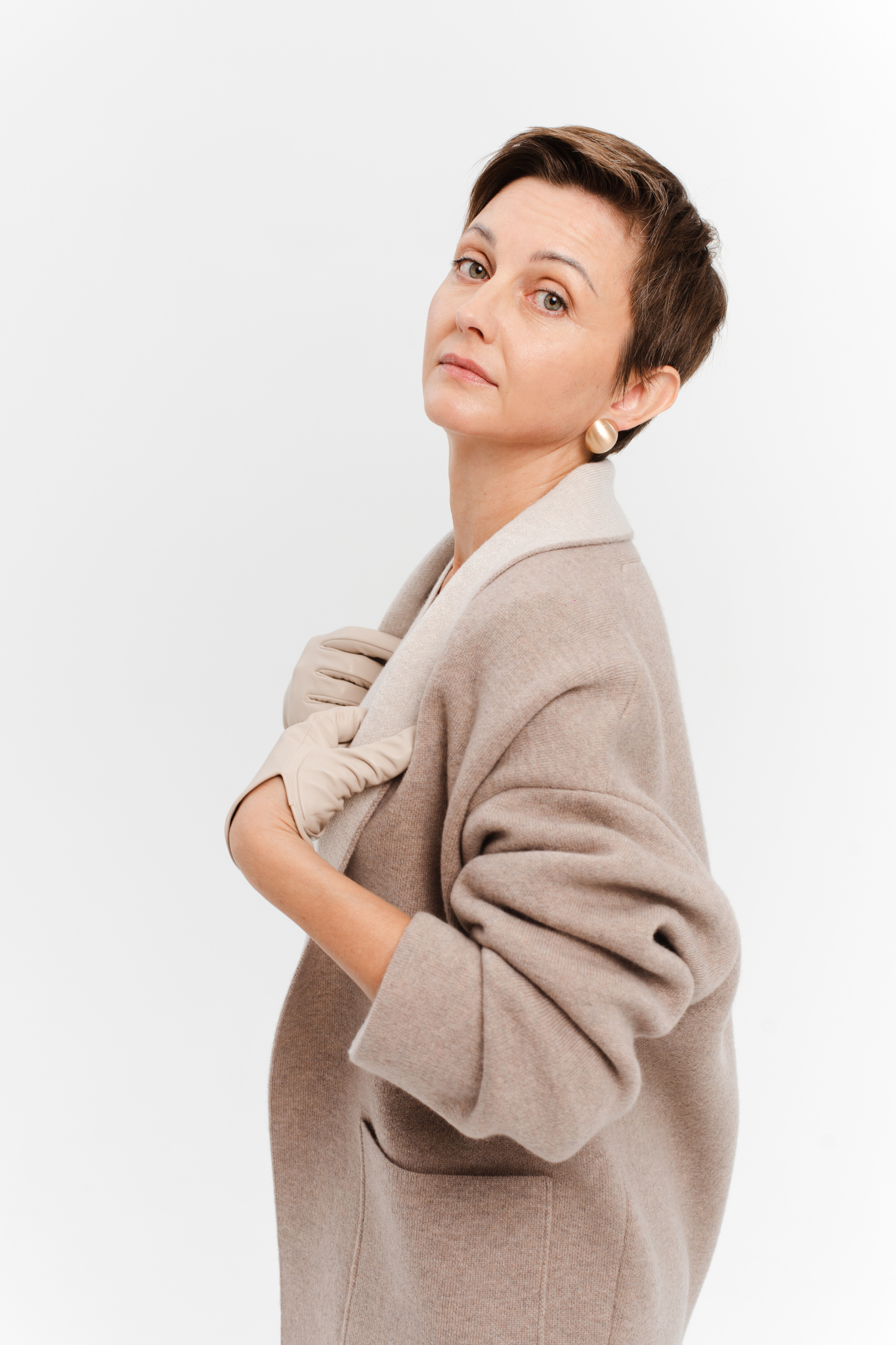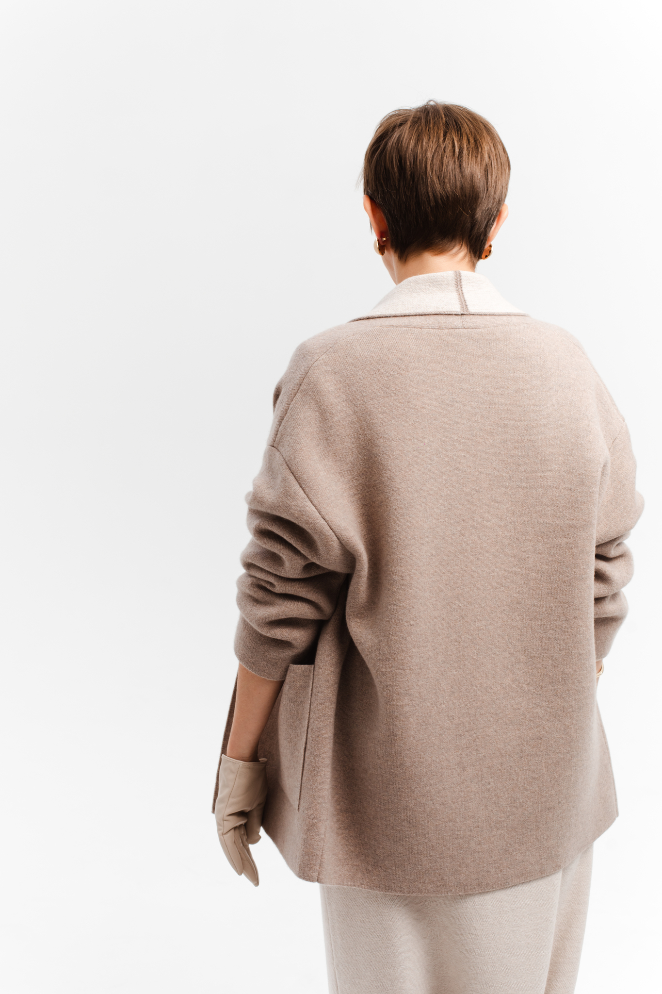 Глубокий и выразительный темно бежевый цвет снаружи идеально сочетается с мягким бежевым подкладом. Такой дизайн добавляет слоёности образу и выглядит дорого и изысканно даже при движении.